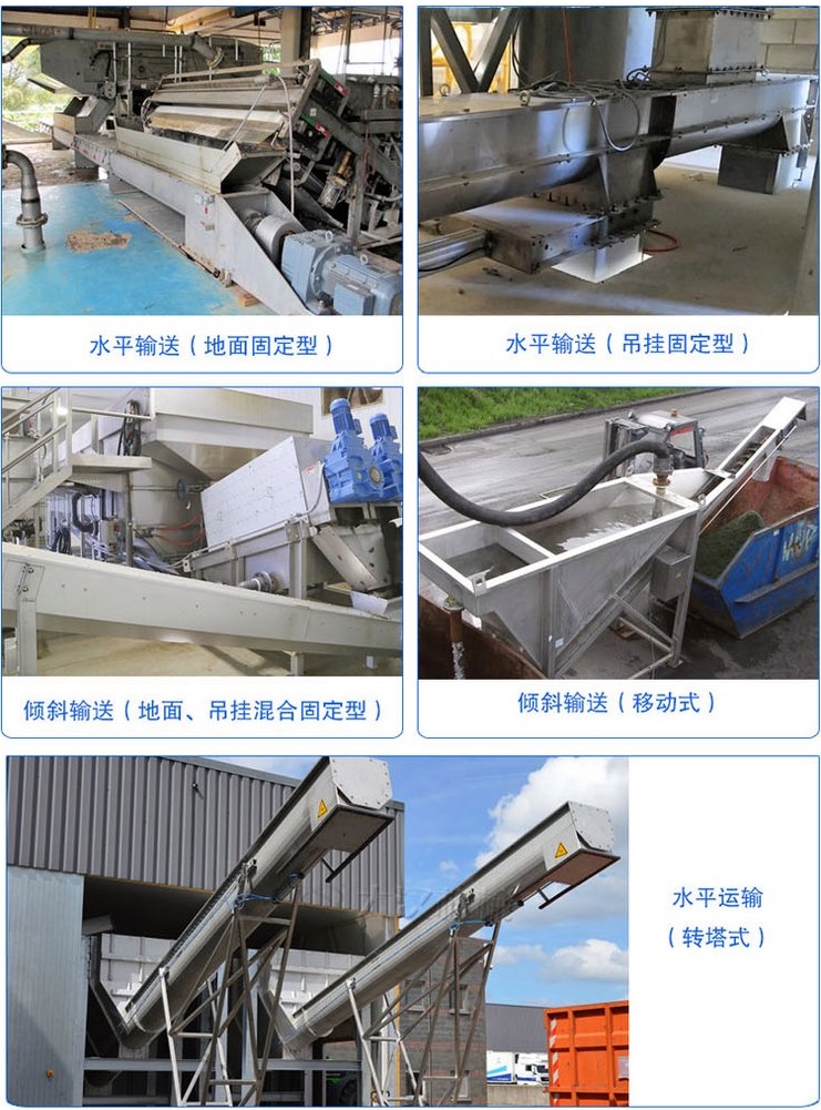 主要用于污水處理、垃圾回收中,廣泛用于化工、食品、醫(yī)藥、造紙、飲料等行業(yè)輸送附著力強、膏狀粘性物料(如化工原料、廢紙漿、麥芽、污泥、等)纏繞材料(如生活垃圾)。