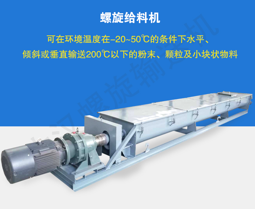 螺旋給料機又叫螺旋喂料機,可在環(huán)境溫度在-20~50℃的條件下水平、傾斜或垂直輸送200℃以下的粉末、顆粒及小塊狀物料。大漢螺旋給料機可根據輸送物料及應用環(huán)境選擇碳鋼、不銹鋼材質。